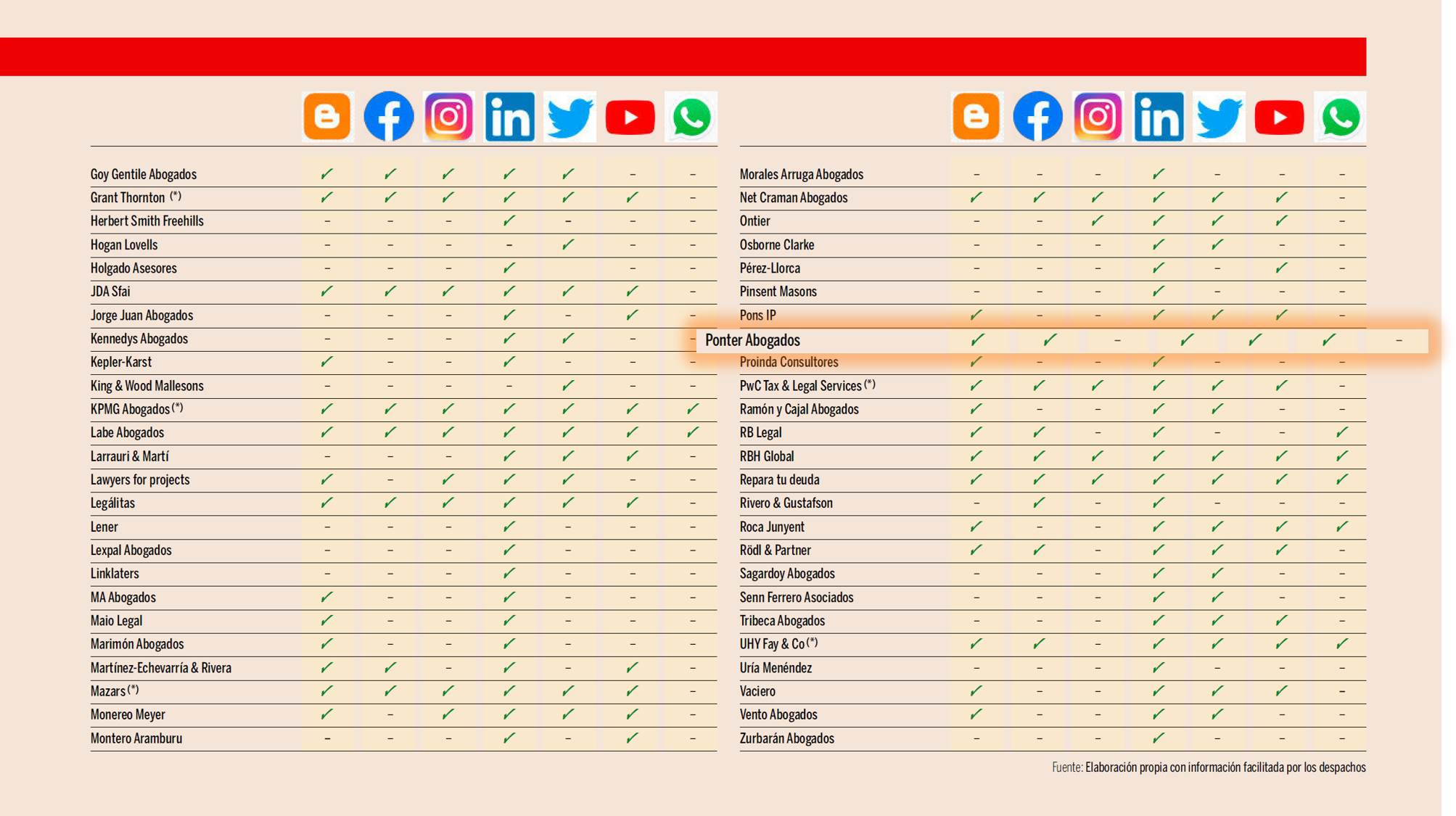 En Ponter Abogados y Asesores contamos con cuentas corporativas en LinkedIn, Facebook, Twitter y Youtube a través de estas redes sociales compartimos noticias de interés, formaciones, eventos, webinars y todas las novedades del despacho.